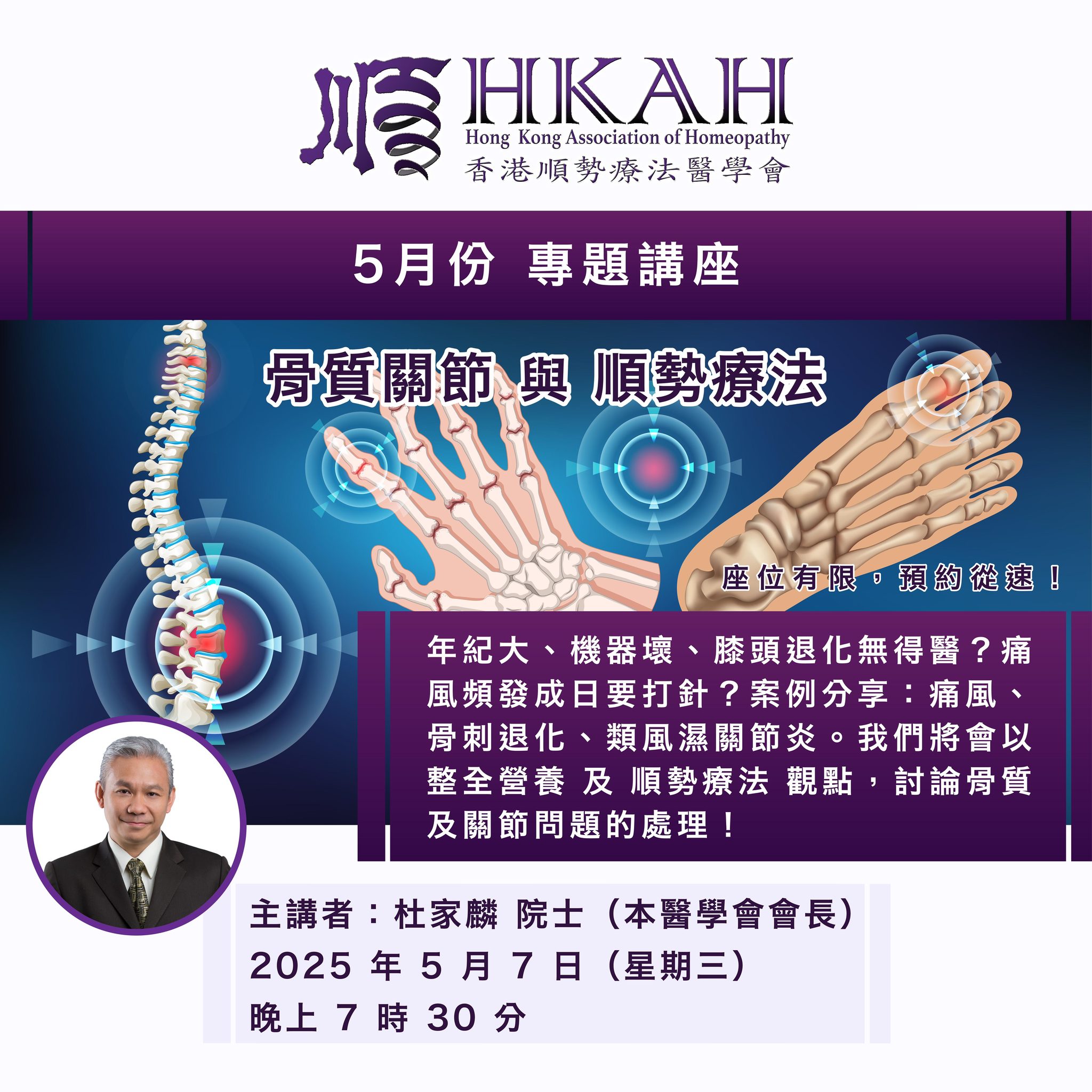 内容:成长时如何令潜能最大化? 要直、要强、要韧力! 长者骨质要如何保养? 我们将会以 整全营养 及 顺势疗法 观点,讨论骨骼问题的处理!