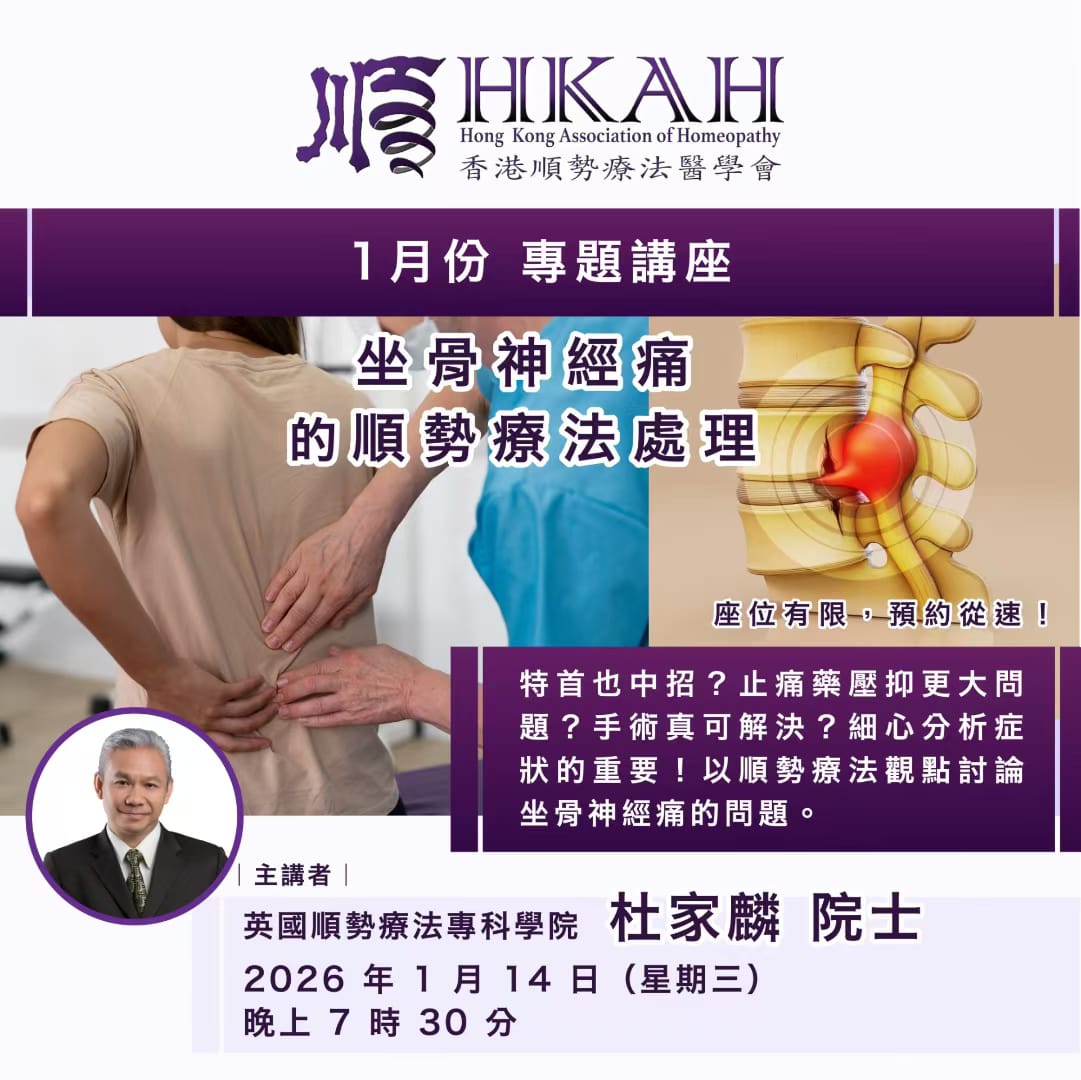 内容:年纪大,机器坏,膝头退化无得医?痛风频发,成日要打针?案例分享:痛风、骨刺退化、类风湿性关节炎、椎间盘突出。我们将会以 整全营养 及 顺势疗法 观点,讨论骨质和关节问题的处理!