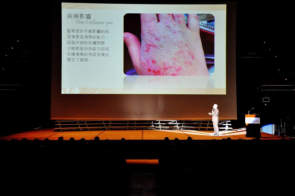 香港顺势疗法医学会会议2013 (HKAH Conference 2013) 演讲者:杜家麟教授PS Hom(UK), MARH 场地:香港伊利沙伯体育馆表演场 『皮肤是心灵的一面镜子』 有人说:皮肤是内脏的反射镜? 但美国顺势疗法之父君士坦丁.赫林 (Constantine Hering)却认为皮肤这面镜子真正反映的是人类心灵。 于镜子上照出有瑕疵的时候,若然我们只懂得花尽气力、不停在镜子上作修饰,只会让及时修补心灵缺损的时机白白流过, 镜子也无法反映出真正的美肌。
