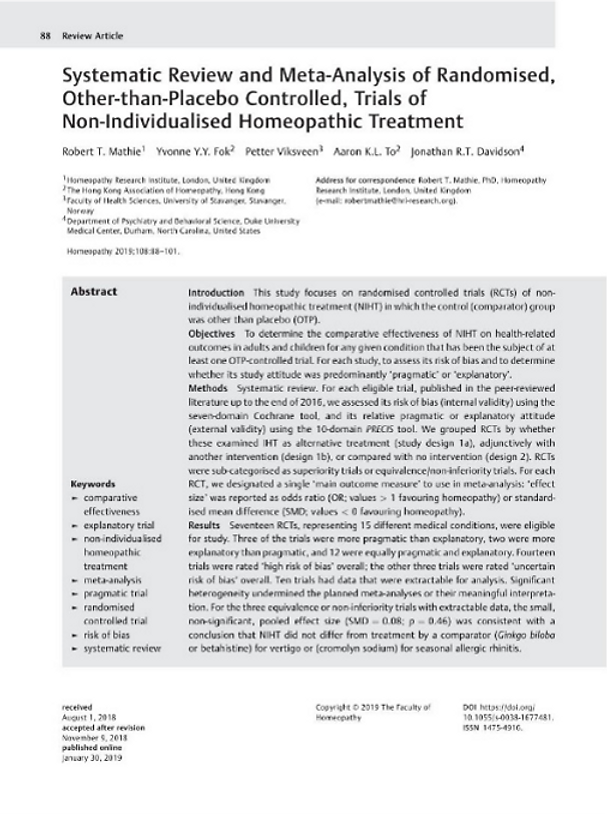 2017年杜家麟院士亦已开始跟顺势疗法研究院系统综述团队合作,进行为期三年的一系列系统性综述(Systematic Review),陆续经同行评审及出版。
