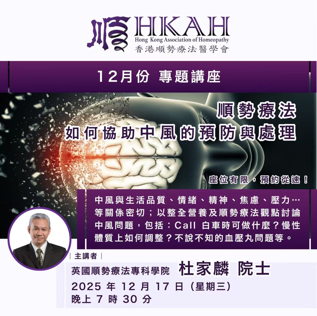 内容:我们将会以 整全营养 及 顺势疗法 观点,讨论记忆力问题的处理!由本医学会会长 --- 杜家麟院士主讲,座位有限,请预先留座!